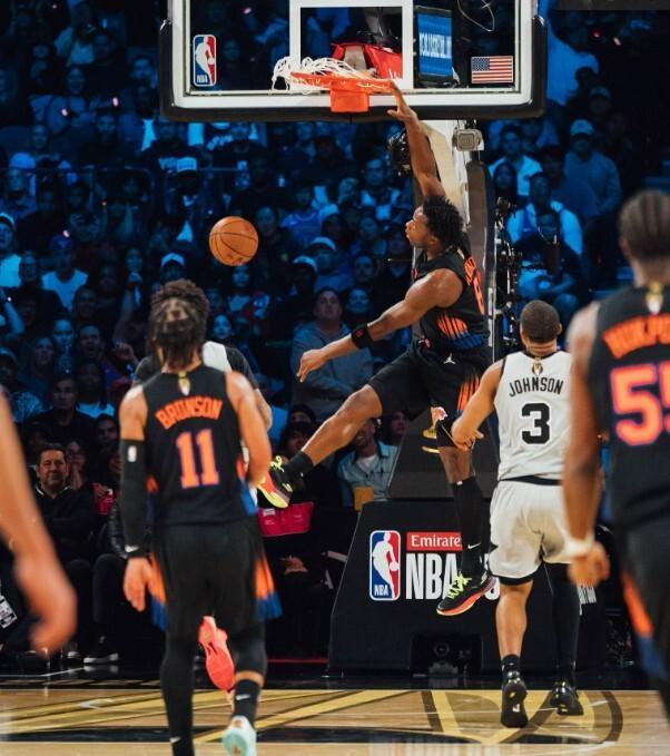 末節(jié)克拉克森兩記三分命中,尼克斯打出8-0的開局,一舉實現(xiàn)反超。2分58秒哈特三分命中,尼克斯115-107領(lǐng)先8分。哈珀三分追回到5分差距,隨后阿努諾比的三分命中,讓尼克斯再次取得8分優(yōu)勢。此后馬刺接連進攻不中,科勒克連得4分,122-110尼克斯領(lǐng)先12分,馬刺大勢已去。最終全場比賽戰(zhàn)罷,尼克斯124-113贏下勝利。