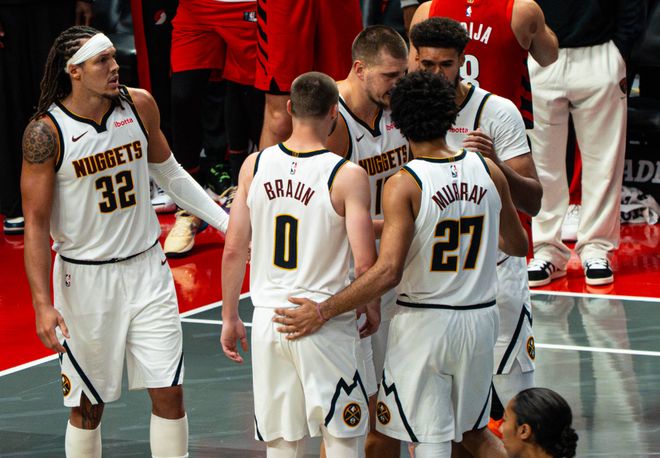 聯(lián)盟第2的水平。但約基奇不在場(chǎng)時(shí),球隊(duì)凈效率值-5.3,相當(dāng)于聯(lián)盟第26位的水平!實(shí)際上約基奇在賽季前32場(chǎng)比賽保持全勤,他是這支掘金常規(guī)賽最穩(wěn)定的下限。場(chǎng)均29.6分12.2籃板11助攻,WS勝場(chǎng)貢獻(xiàn)值8.7(直接理解成,約基奇幫掘金多贏接近9場(chǎng)比賽,如果沒約基奇,掘金可能是13勝19負(fù)),西部第12的水平。最無奈的是,球隊(duì)首發(fā)之一的布萊恩在11月中旬遭遇腳踝扭傷,6周時(shí)間過去,沒有復(fù)出時(shí)間表;核心之一的戈登,遭遇右腿筋拉傷,從11月底受傷后一直缺陣。