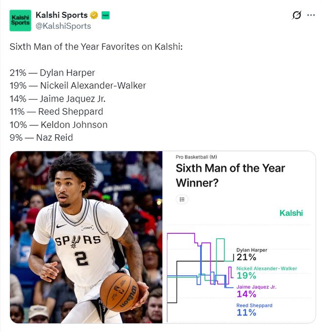 目前謝潑德排在聯(lián)盟最佳第六人排行榜的第四位,目前他的超六概率11%。