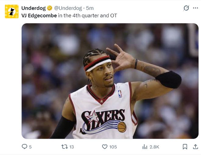 美媒UnderDog寫道:第四節(jié)與加時(shí)賽的埃奇庫姆就是阿倫-艾弗森附體。