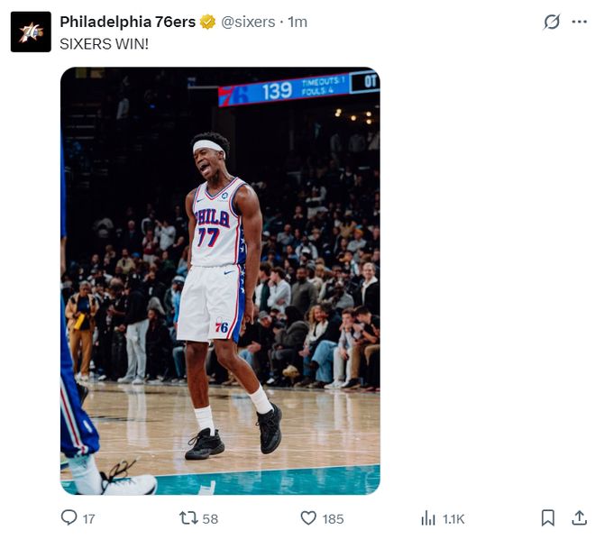 北京時(shí)間12月31日,費(fèi)城76人139-136擊敗孟菲斯灰熊結(jié)束三連敗。這場比賽兩隊(duì)鏖戰(zhàn)至加時(shí)賽,灰熊在一度領(lǐng)先費(fèi)城10分的情況下被逆轉(zhuǎn)了,費(fèi)城逆轉(zhuǎn)成功的第一功臣就是新秀探花埃奇庫姆,因?yàn)樗辛藴?zhǔn)絕殺的三分。