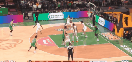 比賽開始后,大鯊魚反客為主,迅速建立起領(lǐng)先,張鎮(zhèn)麟面對舊主毫不手軟,用一記暴扣吹響了球隊猛攻的號角,上海男籃迅速將分差拉開到兩位數(shù)。