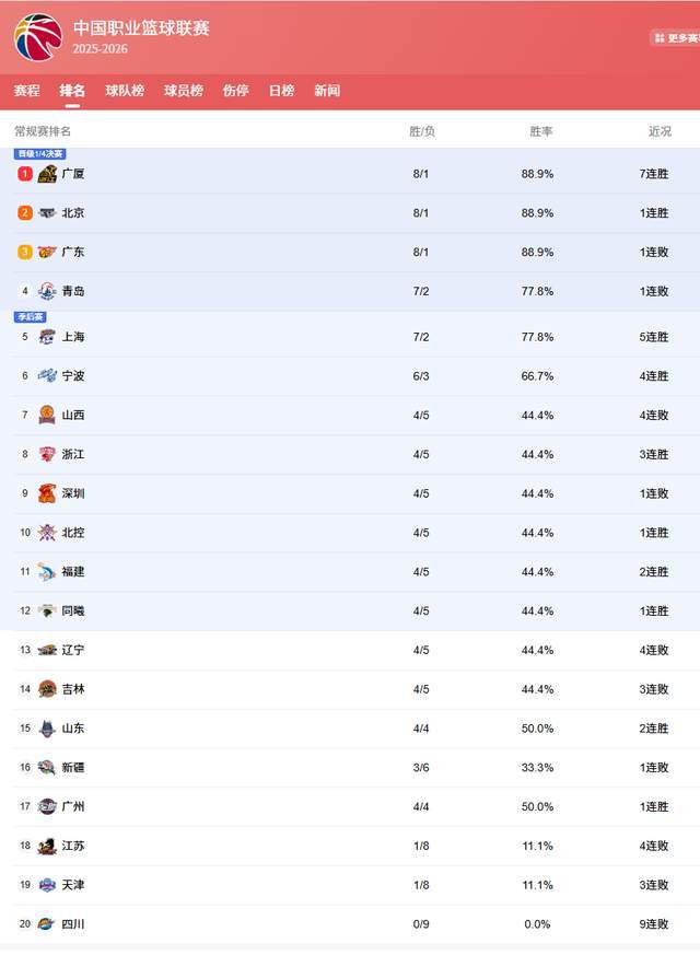 最后五名球隊(duì)中,新疆隊(duì)外援和主帥表現(xiàn)均遭質(zhì)疑,麻煩不斷,客場(chǎng)不敵山東隊(duì)之后,排名繼續(xù)下滑。廣州隊(duì)雖戰(zhàn)勝山西,但少賽一場(chǎng),僅以4勝位列倒數(shù)第4位。江蘇、天津和四川隊(duì)則鞏固了最后三名位置,季后賽形勢(shì)嚴(yán)峻。山東隊(duì)盡管擊敗了新疆隊(duì),戰(zhàn)績(jī)變成4勝4負(fù),但少賽一場(chǎng),邱彪的隊(duì)伍依舊無(wú)緣前12,僅排在第15位,繼續(xù)倒數(shù)。