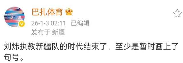 主帥擊敗廣州龍獅讓劉煒得到了喘息的機(jī)會(huì),然而客場(chǎng)慘敗給山東男籃,讓劉煒失去了最后的稻草,根據(jù)新疆媒體透露,新疆男籃已經(jīng)進(jìn)行了調(diào)整,劉煒會(huì)暫時(shí)離開球隊(duì),姜正秀成為代理主帥,但目前新疆男籃沒(méi)有進(jìn)行回應(yīng)。