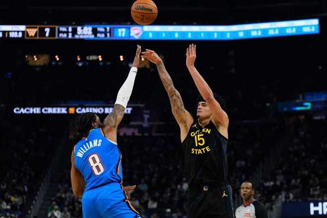 次節(jié)上來,桑托斯兩罰追分,威金斯突破打進(jìn),波杰跳投也有,TJD、理查德連續(xù)得手,勇士一波9-0將分差追至僅差2分,霍姆格倫連得11分,卡魯索、亞歷山大、多爾特內(nèi)外開花,雷霆回應(yīng)一波21-1攻擊波直接將領(lǐng)先拉開到22分之多,半場結(jié)束時雷霆64-45領(lǐng)先勇士19分。