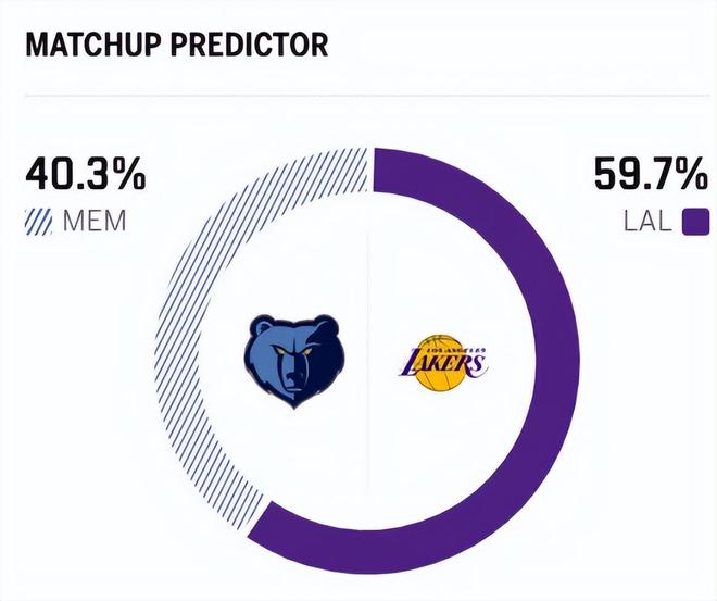 截止到目前,湖人戰(zhàn)績20勝11負,排名降至西部第五。作為對比,灰熊隊目前以15勝18負的戰(zhàn)績,排名西部第九,打得算是中規(guī)中矩。賽前,美媒ESPN對本場比賽進行了勝率預測,湖人勝率為59.7% ,略占優(yōu)勢,灰熊隊勝率則僅有40.3%。