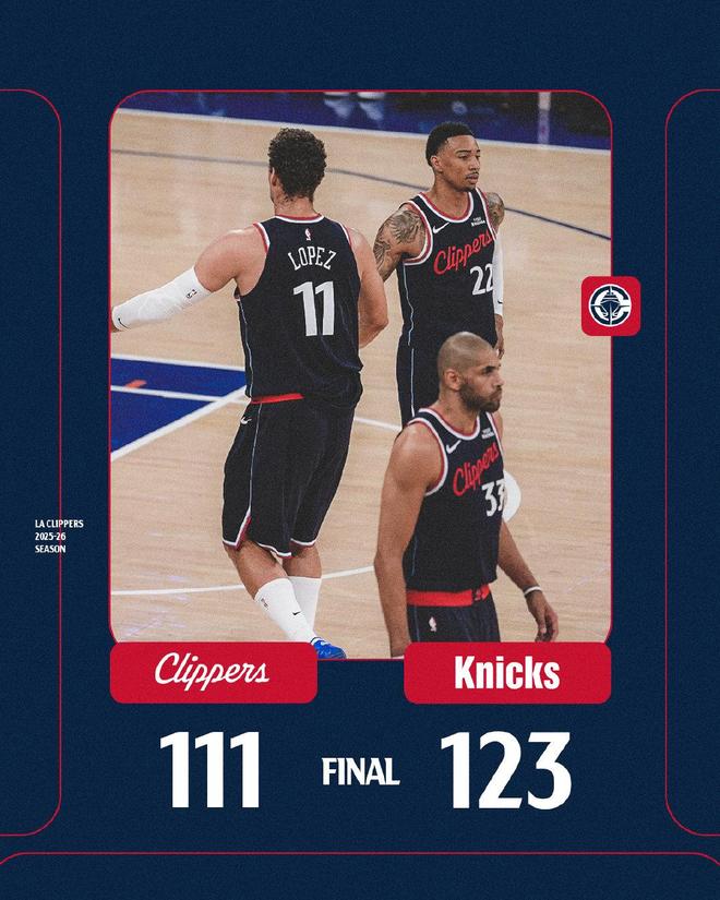 祖巴茨封蓋亞布塞萊的扣籃,布倫森回敬遠(yuǎn)投,科林斯打成了2+1。布倫森中投得分,小卡單打不進(jìn),亞布塞萊強(qiáng)攻內(nèi)線得手。哈登打板命中,亞布塞萊回敬遠(yuǎn)投,尼克斯取得15分領(lǐng)先。米切爾羅賓遜封蓋小卡,鄧恩命中三分球,布朗請求暫停。祖巴茨勾手打進(jìn),麥克布萊德中投取分,科林斯又中遠(yuǎn)投,隨后制造了唐斯的進(jìn)攻犯規(guī),分差來到了個位數(shù)。哈登里突外投未能得分,阿奴諾比外線取分,鄧恩2罰全中。布里奇斯中投打進(jìn),唐斯罰進(jìn)1球,尼克斯領(lǐng)先13分。距離終場僅剩90秒,兩隊(duì)逐漸換上板凳席末端的球員,比賽就此失去了懸念。最終,快船以111比123完敗對手,尼克斯則止住了4連敗。