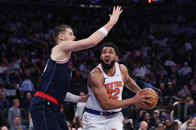 尼克斯隊(duì)內(nèi)線巨頭卡爾安東尼唐斯,在此役表現(xiàn)突出。唐斯上場31分鐘,18投6中,三分球4投0中,罰球10中8,得到了20分11板7助攻1搶斷1蓋帽。唐斯效率并不理想,僅有33%的命中率,三分球則是顆粒無收。
