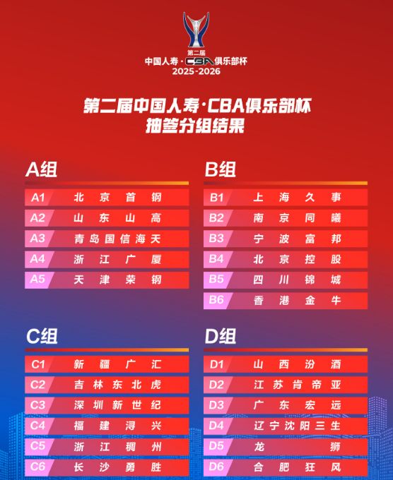 CBA俱樂部杯分組賽區(qū)如下: