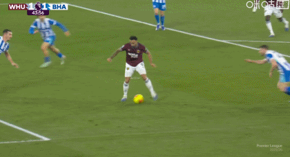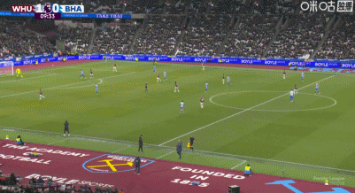 第10分鐘,帕奎塔妙傳,鮑恩冷靜破門,西漢姆聯(lián)1-0!
