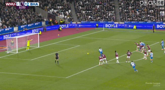 第32分鐘,揚庫巴-明特造點,維爾貝克操刀命中,布萊頓1-1!