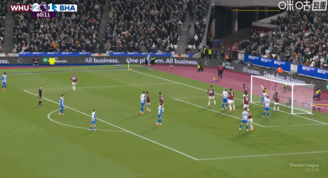 第61分鐘,費爾特曼門前補射得手,布萊頓2-2!