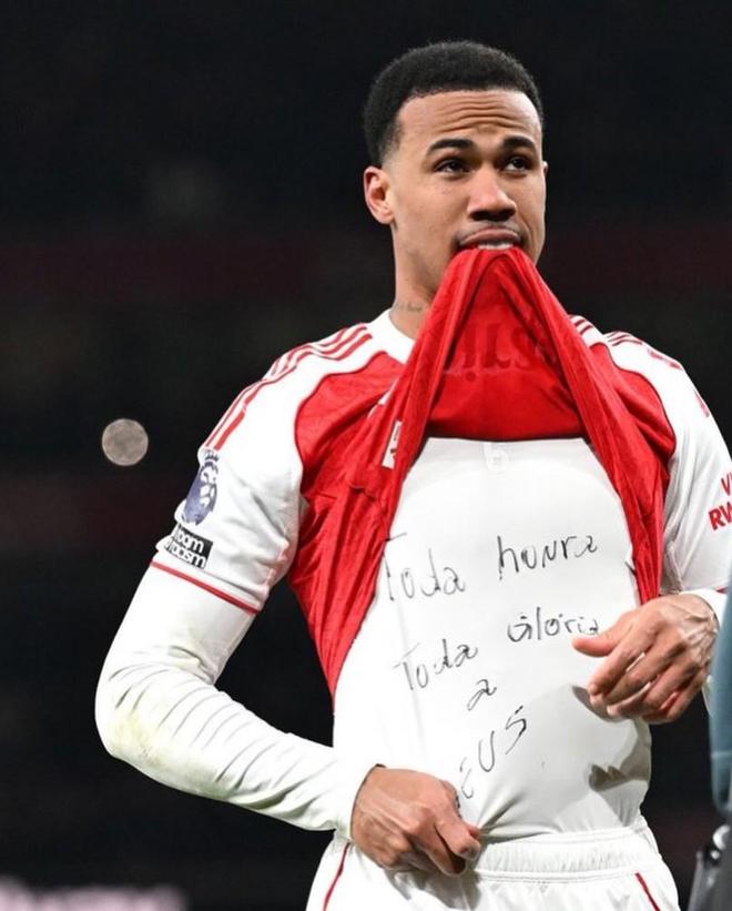 賽后,加布里埃爾在社交媒體曬出多張慶祝進(jìn)球的照片并寫道:“榮耀與頌贊全歸于上帝!”