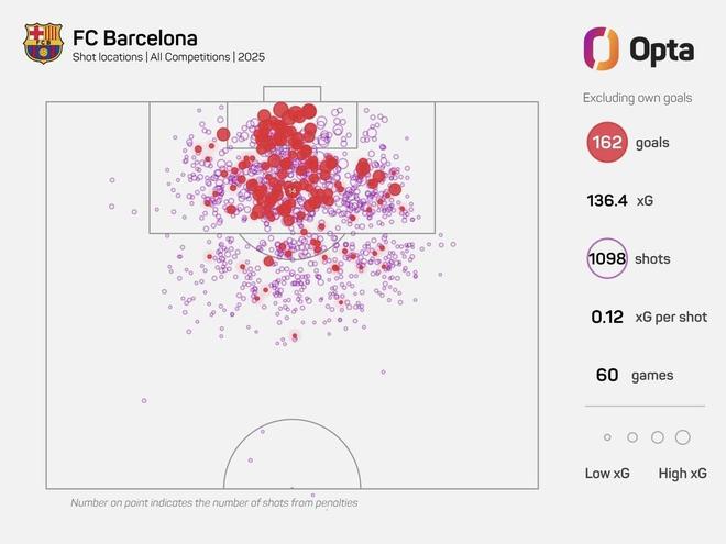 根據(jù)Opta統(tǒng)計的數(shù)據(jù),巴塞羅那在2025年各項賽事(包括烏龍球)的60場比賽中攻入169球,創(chuàng)造了西甲球隊在沒有梅西或C羅的情況下,單年進球數(shù)的新紀(jì)錄。