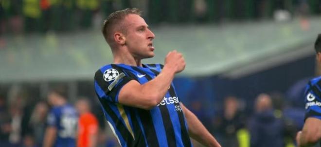 下半場(chǎng)63分鐘,又是泥頭車鄧弗里斯頭球得手,國(guó)米再度領(lǐng)先!2分鐘后,索默撲救之后躲閃不及,球打在身上入網(wǎng),3比3!