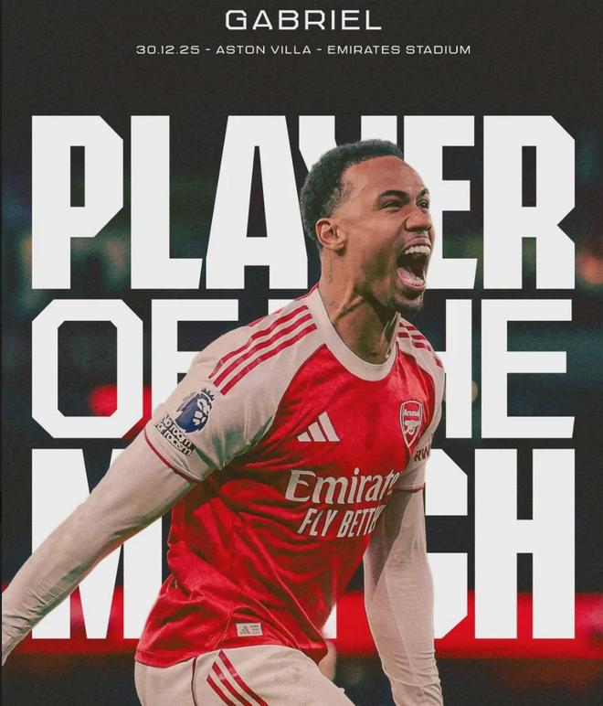 加布里埃爾被阿森納官方票選為了本場(chǎng)比賽最佳球員。