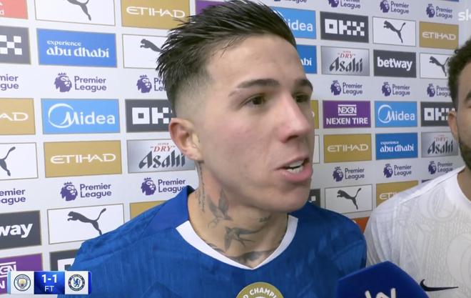 英超第20輪,切爾西客場1-1戰(zhàn)平曼城,賽后,此役打入絕平進(jìn)球的切爾西中場恩佐接受了天空體育的采訪。