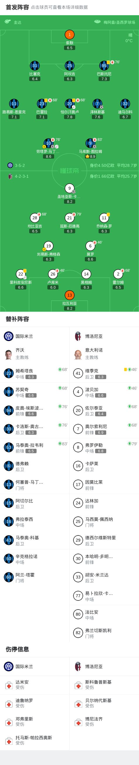 北京時間1月5日,意大利足球頂級聯(lián)賽第18輪,國際米蘭坐鎮(zhèn)主場迎戰(zhàn)博洛尼亞。上半場,勞塔羅助攻,澤林斯基勁射得分。下半場,恰爾汗奧盧開出角球,勞塔羅破門。隨后,圖拉姆用肩膀將球撞進球門。全場比賽結束,國米3-1擊敗博洛尼亞,成功登頂意甲。