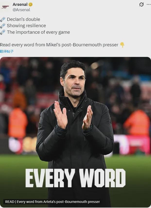 阿爾特塔出席了賽后新聞發(fā)布會,我們來看看阿森納主帥的言論。