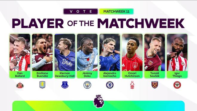北京時(shí)間11月10日,英超官方公布了第11輪比賽最佳球員的候選名單,其中多庫(kù)、加納喬、布恩迪亞、巴拉德、迪尤斯伯里-霍爾、哈欽森、紹切克、伊戈?duì)?蒂亞戈在列。